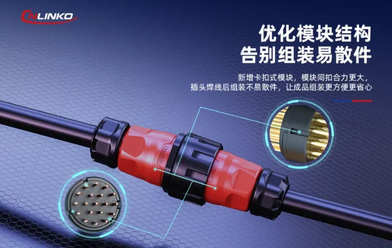 水質監測系統的前端部分,在惡劣環境的長期使用中連接器保持持久耐用和可靠顯得很重要。上述YM24升級款連接器,新增了卡扣式模塊,模塊間扣合力更大,組裝后不易散件,更結實耐用;同時在插頭插座的連接結構上采用了螺旋卡口式連接設計,連接更穩固,因而在長時間不間斷的連接使用下,該款連接器能保障更可靠、更耐用。