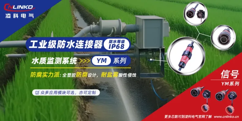 凌科的新增卡扣模塊結構設計的全新升級版的YM24系列多芯數工業級連接器,憑借IP68級旗艦級防水,防腐蝕,低溫升傳輸、牢靠耐用等優勢,成為水質監測系統適合的連接方案產品。目前這款產品正在水質監測系統等領域應用。
