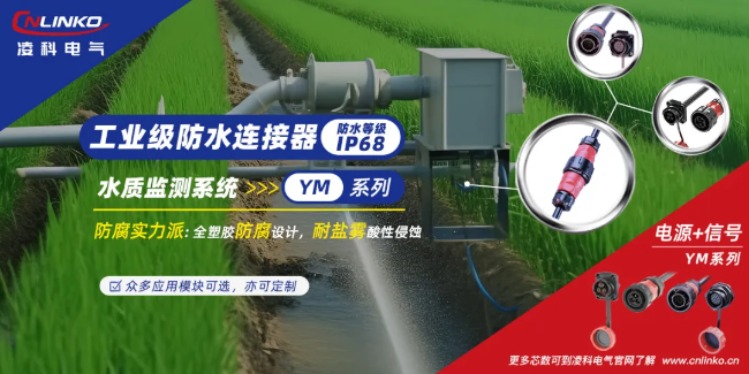 對于水質監測系統,要用到電源連接器和信號連接器。分別提供電源連接支持和傳感器信號的傳導。凌科YM系列工業級連接器,以嚴苛的設計和制造標準打造,實現IP68級高防水性能,可在水質監測系統的潮濕和水液環境下提供更強防護。
