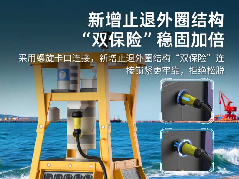 海洋環境振動源復雜(如持續浪擊、強風沖擊等),遠超陸地場景,因而海洋環境監測設備選用連接器非常看重連接鎖定的穩固性。