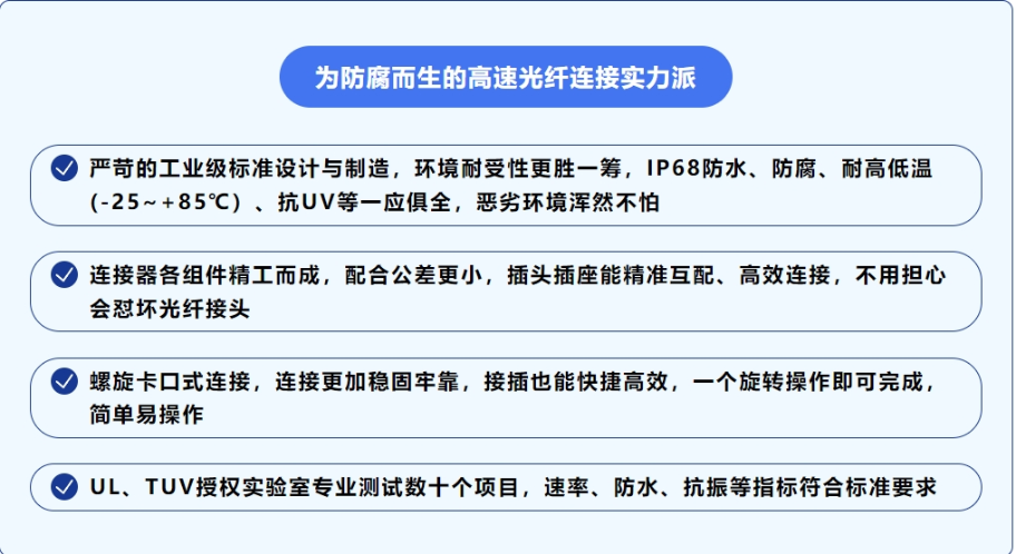 光纖是個耳熟能詳的名詞,畢竟大家上網都會用到光纖。對于光纖,大家普遍的共識,那就是快。可是如果用在戶外,或者環境惡劣的工業場景之中,一個普通且無力抗衡惡劣環境的光纖連接器,就無力勝任了。這個時候,就該派上高可靠“超能造”的工業級光纖連接器了,才能保障高速數據的可靠傳輸。
