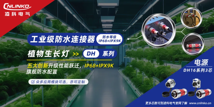 DH16系列工業級連接器:旗艦級高防水,保障植物生長燈穩健運行