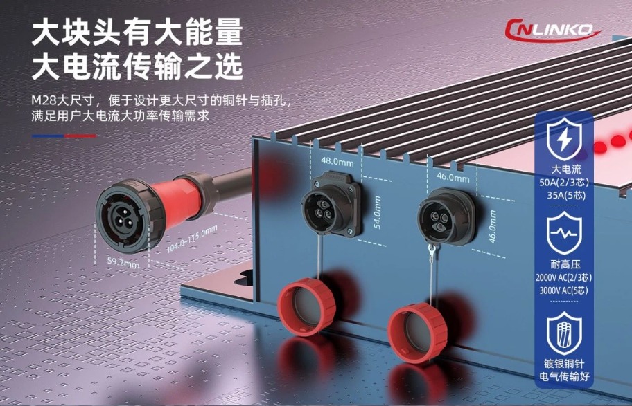 儲(chǔ)能等采用的鋰電池系統(tǒng),通常需要承載更高的電流。連接器需要能安全地傳輸大電流,且不會(huì)產(chǎn)生過(guò)熱等問(wèn)題。凌科這款大尺寸的工業(yè)級(jí)連接器,具備傳輸最大50A的大電流的能力,是大電流連接應(yīng)用中的一款極具競(jìng)爭(zhēng)力的產(chǎn)品,可滿足鋰電池系統(tǒng)對(duì)大電流傳輸?shù)姆€(wěn)定和安全方面的技術(shù)要求。