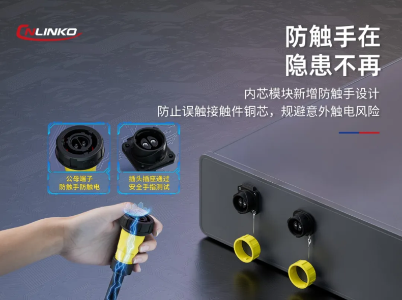 2、公母端子物理防觸電結構,有效防止手指或工具意外插入帶電部位,杜絕誤觸帶電部件的風險。