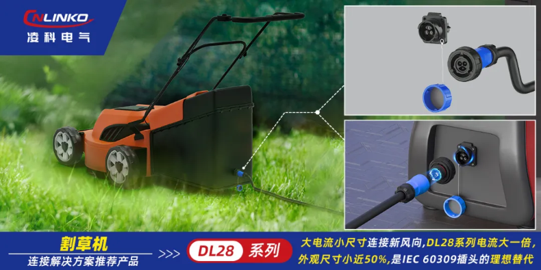 無論是商用草坪還是家用庭院,高效草坪維護日益依賴割草機。戶外或室內等多場景充電環境下,電氣連接安全至關重要。凌科DL28連接器憑借多重技術優勢,正逐步替代傳統IEC60309插頭,成為割草機充電連接的理想解決方案。
