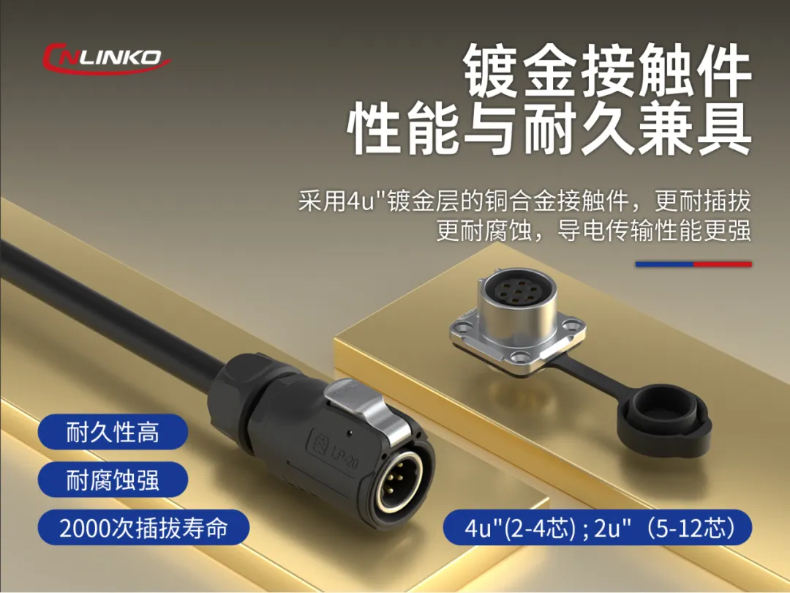 凌科氣密連接器采用銅合金鍍金接觸件(鍍層最高4μ”),確保高效電源傳輸;2000次插拔壽命達行業常規標準500次4倍以上。這一設計適配了智能停機坪頻繁轉場作業需要經常插拔連接器的訴求,同時保障了電力傳輸穩定。